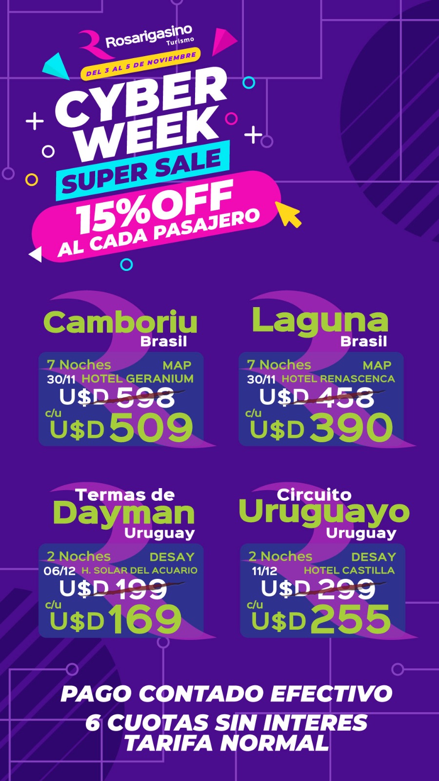 PROMO 3 (TARJETA DE CREDITO):  Abonando un 30% en efectivo billete, el resto  6 CUOTAS SIN INTERES con la tarifa normal.