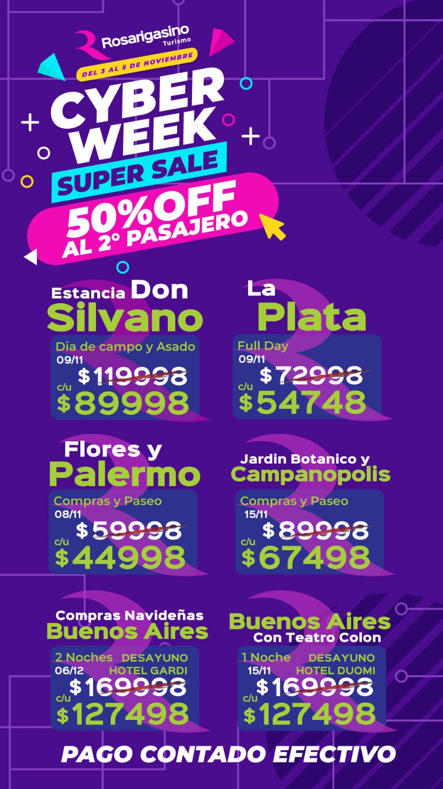PROMO 1 (SOLO EFECTIVO):   Abonando tu reserva en efectivo billete, el segundo pasajero tiene un 50% de descuento, en viajes seleccionados.