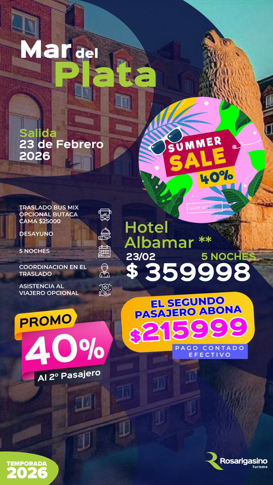 PROMOCION: Abonando tu reserva en efectivo (billete), el segundo pasajero tiene un 40% de descuento.