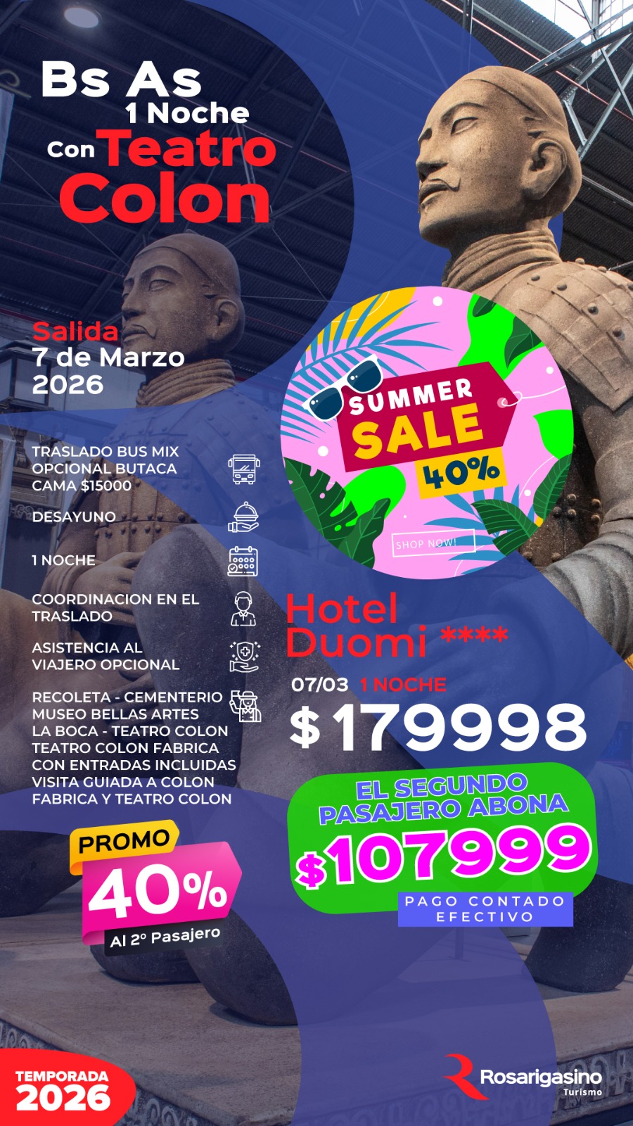 PROMOCION: ABONANDO TU RESERVA EN EFECTIVO (BILLETE), EL SEGUNDO PASAJERO TIENE UN 40 % DE DESCUENTO.