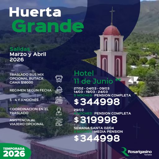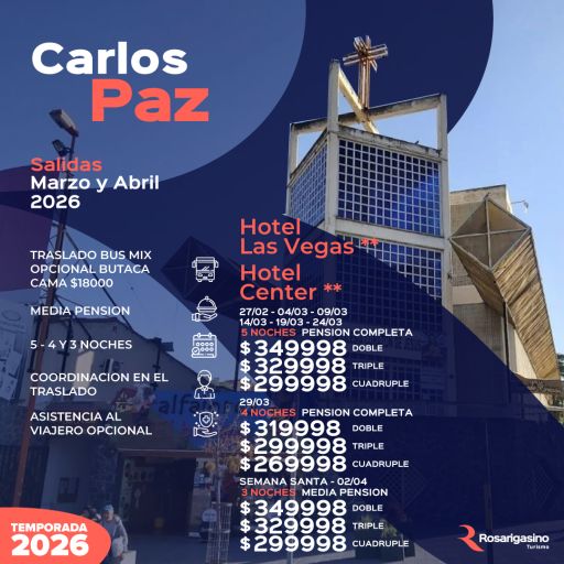 HORARIOS: Salida 04/06 a las 21 Hs (aprox.) - Llegada a Rosario el 09/06 a las 22 Hs (aprox.)